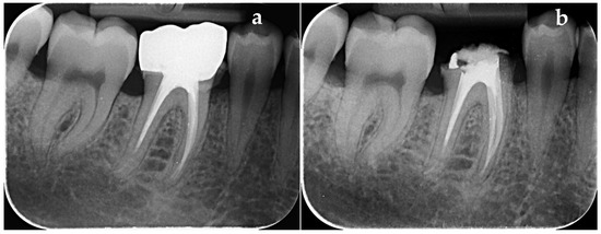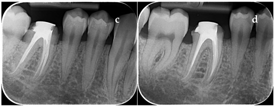 After root filling, teeth were referred to a prosthetic specialist for a crown coverage if indicated. During the survey, temporary prosthetic crown according to Heimann (2021) was made by a modified radiolucent hybrid composite (Estenia, Kuraray) to avoid interference with the radiological assessment and diagnosis of marginal gaps, quality of the root filling and the overall condition for apical healing [40].