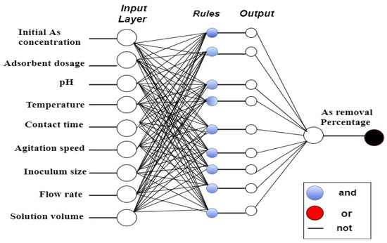 Earlier, the ANFIS model demonstrated a good performance in predicting the removal efficiency of some heavy metals other than As from aqueous solutions [25,26,27].