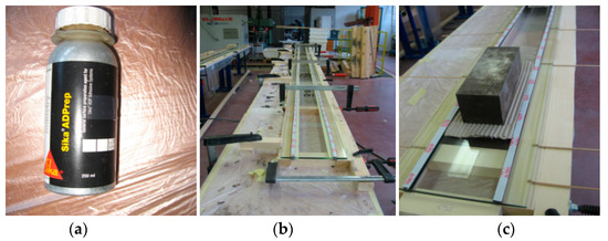 Combining two materials with significantly different values of coefficient of thermal expansion (αT), an elastic adhesive can be used to mitigate the relative deformation between the two materials due to temperature changes. The elastic adhesive bond performs a similar function in the event of a sudden change in relative humidity that affects the volumetric properties of the timber (i.e., expansion and contraction). Three types of adhesives were used: SikaSil SG500 silicone, SikaFast 5215 acrylate and Sikadur®-31 CF epoxy (Table 5).