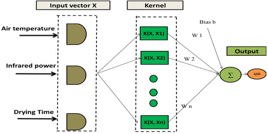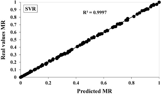 In a study conducted by Abdollahpour et al. [58], they reported that the ANN model has a greater ability than the SVR model to predict the moisture content of wheat at harvest time. In another study, Taheri et al. [59] modeled the moisture content for drying the lentil seeds in a microwave fluidized bed dryer using the SVR and ANN. They showed that the ANN model performed better with R2 = 0.999 than the SVR with R2 = 0.995.