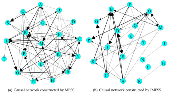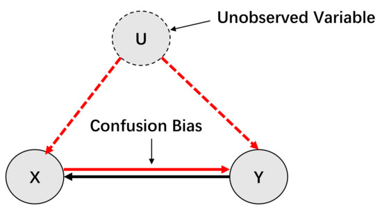 It should be noted that there might be bidirectional causalities of the network inferred by MESS and IMESS. They are logically unreasonable, but since we cannot observe all the variables in the system during causal inference, confusion bias is inevitable [28]. Bidirectional causality implies that there may be confusion bias caused by a hidden common cause (see Figure 5). Hence, in our study, bidirectional causality is considered to be reasonable.