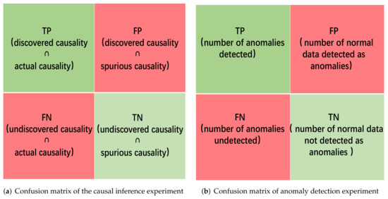 We employ precision, recall, and F1-score as the evaluate metrics (see Equation (18)). Figure 9b shows the confusion matrix of anomaly detection experiment. We also recorded the time-consumption of each method in the anomaly detection phase (experimental environment configuration: Windows 10 + python 3.8 + CUDA 10.1 + CUDNN 7.6.5 + tensorflow 2.5.0).