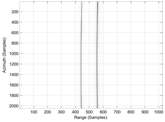RDA is a simple and mature SAR image-processing algorithm with a relatively small computation load. It is suitable for real-time processing. Basically, it divides the SAR echo-signal-processing into two one-dimensional processes in cascade, i.e., range compression followed by azimuth compression. If the size of the range migration is not more than one range resolution cell, i.e., the target impulse response is within the range resolution in a cell, it can be considered as a straight line. Thus, compensation for range-cell migration is not required. In summary, real-time signal-processing algo-rithms for airborne SAR can be implemented by RDA. An RDA block diagram is shown in the Figure 2.