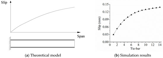 Figure 13b shows the interfacial shear slip distribution when the tensile steel plate was yield. The minimum shear connection ratio is when the tensile steel plate was yield and the SC composite beam reached theoretical value. According to the simulation results, the minimum shear connection ratio of the SC composite beam with a 6.67 shear span ratio is 1.55.