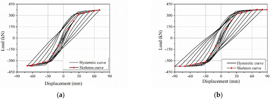 12]. After simulation, the load-displacement curves and skeleton curves of the two SC composite beams are shown in