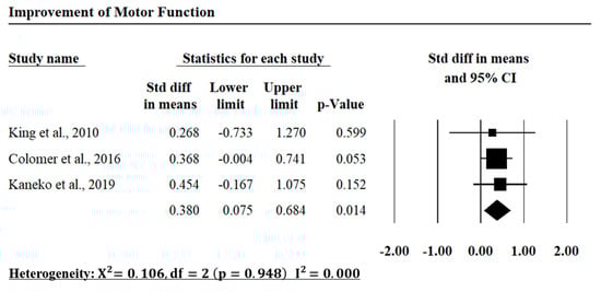 The meta-analysis results of the included investigations in the motor function improvement of the upper limb rehabilitation.
