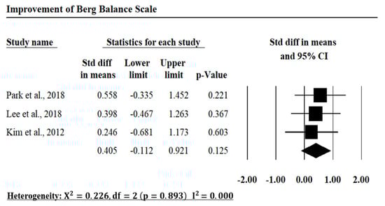 The meta-analysis results of the included investigations in the Berg Balance Scale improvement of the lower limb rehabilitation.