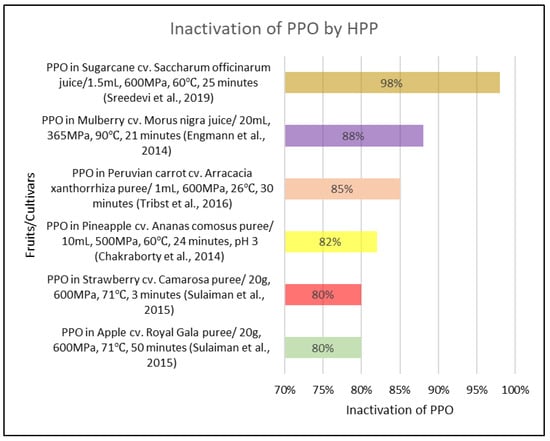 - Sreedevi, P.; Jayachandran, L.E.; Rao, P.S. Kinetic modeling of high pressure induced inactivation of polyphenol oxidase in sugarcane juice (Saccharum officinarum). J. Sci. Food Agric. 2019, 99, 2365–2374. [Google Scholar] [CrossRef] [PubMed]