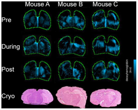 - Lin, Z.-J.; Ren, M.; Li, L.; Liu, Y.; Su, J.; Yang, S.-H.; Liu, H. Interleaved imaging of cerebral hemodynamics and blood flow index to monitor ischemic stroke and treatment in rat by volumetric diffuse optical tomography. Neuroimage 2014, 85, 566–582. [Google Scholar] [CrossRef][Green Version]