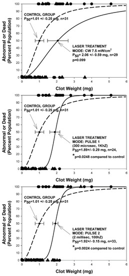- DeTaboada, L.; Ilic, S.; Leichliter-Martha, S.; Oron, U.; Oron, A.; Streeter, J. Transcranial application of low-energy laser irradiation improves neurological deficits in rats following acute stroke. Laser Surg. Med. 2006, 38, 70–73. [Google Scholar] [CrossRef]