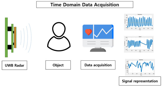 Alternative to the methods explained above, contactless-based methods have been of interest for the measurement of respiratory states since contact-based methods have limitations in that long-term and continuous monitoring is sometimes difficult because devices that measure respiration need to be attached to respiratory organs. Severely injured persons, children, or other people suffer from or have difficulties in the attachment of a sensing device to their body. Unless patients are not comfortable with attaching a sensing device to the body, an accurate measurement of respiration may be difficult. Recently, the Coronavirus disease 19 (COVID 19) has inspired a necessity for the measurement of respiratory states, and the early detection and isolation of potential patients has been one of the most important factors that could reduce the severity of the disease. In addition, due to the limited number of hospital wards, contactless-based methods of respiratory measurement have gained a lot of attention in the areas of medicine and medical engineering. In contactless methods, ultra-wideband (UWB) radar is widely used because of its simplicity, and it enables us to monitor respiratory states in a long-term and continuous manner. However, another recent work has shown a deep learning model using an IR-UWB radar to propose a real-time apnea-hypopnea (AH) event detection [37]. The UWB radar shows robustness against factors in the external environment such as the existence of dust, temperature changes, etc. When using UWB radar sensors for respiration measurement, patients (or persons who need measurements to be taken) do not have inconveniences in attaching the device. The UWB radar sensor provides a high signal-to-noise ratio and accuracy of measurement [38]. If the reflected signal is not pre-processed, various types of filters such as the Kalman filter, bandpass filter, median filter, etc., are employed to enhance the quality of the signals.