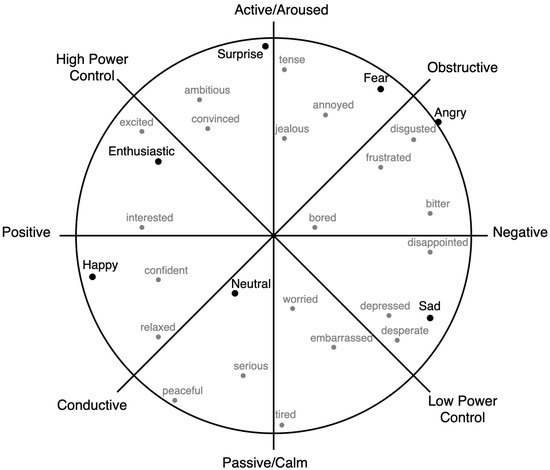 - Russell, J. A circumplex model of affect. J. Personal. Soc. Psychol. 1980, 39, 1161–1178. [Google Scholar] [CrossRef]