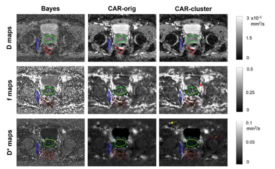 - Lanzarone, E.; Mastropietro, A.; Scalco, E.; Vidiri, A.; Rizzo, G. A Novel Bayesian Approach with Conditional Autoregressive Specification for Intravoxel Incoherent Motion Diffusion-Weighted MRI. NMR Biomed. 2020, 33, e4201. [Google Scholar] [CrossRef]
