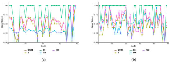 According to Equation (13), we can obtain the 39 nodes’ importance composite scores’ MCNDI.