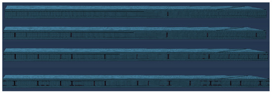 For the geometry mesh generation procedure, four rows of continuum shell elements along the thickness direction of each laminate were placed for higher accuracy, resulting in a total number of 96,000 continuum SC8R type shell elements.