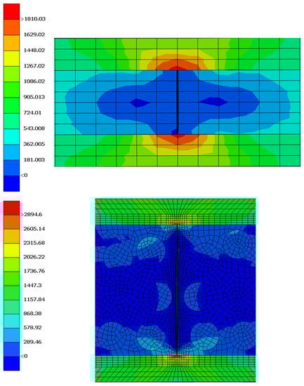 However, the stress profiles cannot be directly compared due to the different representation scales. The macro model refers to the stress concentration upon a homogenized material and the micro model refers to the stress concentration upon the fiber. For their direct comparison, the stress in macro model needs to be localized using the stress concentration tensor of Hillβs [] theories, which invoke the following equations: