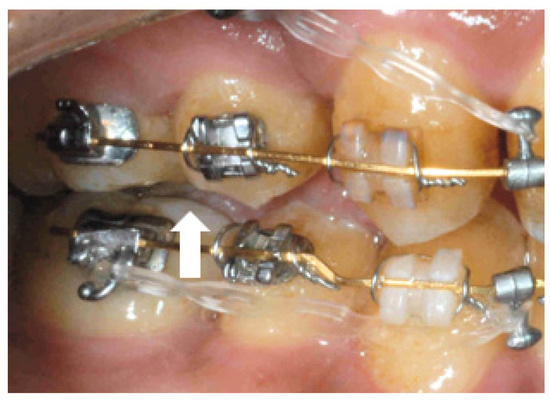 - Nakamura, A.; Teratani, T.; Itoh, H.; Sugawara, J.; Ishikawa, H. Photoelastic stress analysis of mandibular molars moved distally with the skeletal anchorage system. Am. J. Orthod. Dentofac. Orthop. 2007, 132, 624–629. [Google Scholar] [CrossRef]