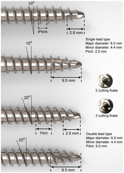 - Standard Specification and Test Methods for Metallic Medical Bone Screws. Available online: https://www.astm.org/f0543-13.html (accessed on 29 December 2021).