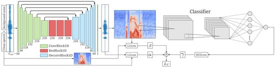 - Défossez, A.; Synnaeve, G.; Adi, Y. Real time speech enhancement in the waveform domain. arXiv 2020, arXiv:2006.12847. [Google Scholar]