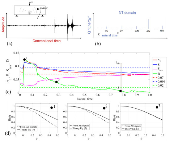 - Niccolini, G.; Manuello, A.; Marchis, E.; Carpinteri, A. Signal frequency distribution and natural-time analysis from acoustic emission monitoring of an arched structure in the Castle of Racconigi. Nat. Hazards Earth Syst. Sci. 2017, 1025–1032. [Google Scholar] [CrossRef]