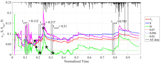 - The analysis in the natural time domain showed that the convergence of the order parameters and the entropies could predict the structure’s entry in a critical stage, whether it is calculated from the AE energy or from counting the ruptured samples.