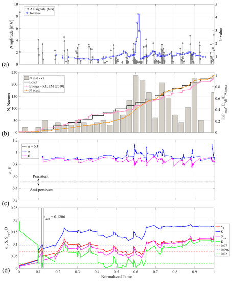 - Loukidis, A.; Pasiou, E.D.; Sarlis, N.V.; Triantis, D. Fracture analysis of typical construction materials in natural time. Phys. A Stat. Mech. Appl. 2020, 547, 123831. [Google Scholar] [CrossRef]