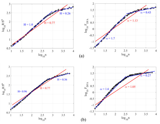 - Bassingthwaighte, J.B.; Raymond, G.M. Evaluating rescaled range analysis for time series. Ann. Biomed. Eng. 1994, 22, 432–444. [Google Scholar] [CrossRef] [PubMed]