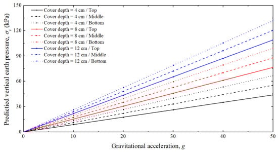 Predicted vertical earth pressure for varying cover depths and gravitational accelerations.