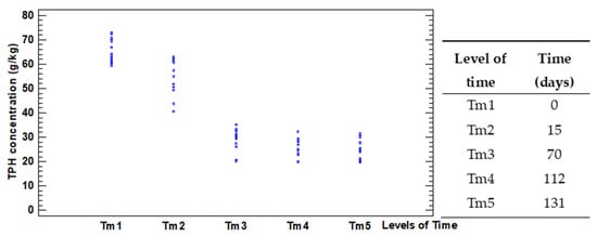 The monitoring of the TPH concentration was done at 0, 15, 70, 112, 131 days, each time corresponding with one level of the factor “Time”.