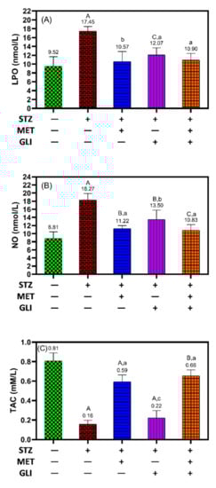 Chicago/Turabian StyleAbdel-Moneim, Abdel-Moneim Hafez, Mohamed Faisal Lutfi, Ashwag Saleh Alsharidah, Gehan Shaker, Waleed Faisal, Ahmed A. H. Abdellatif, Osamah Al Rugaie, Khalid M. Mohany, Safaa Yehia Eid, Mahmoud Zaki El-Readi, and et al. 2022. "Short-Term Treatment of Metformin and Glipizide on Oxidative Stress, Lipid Profile and Renal Function in a Rat Model with Diabetes Mellitus" Applied Sciences 12, no. 4: 2019. https://doi.org/10.3390/app12042019