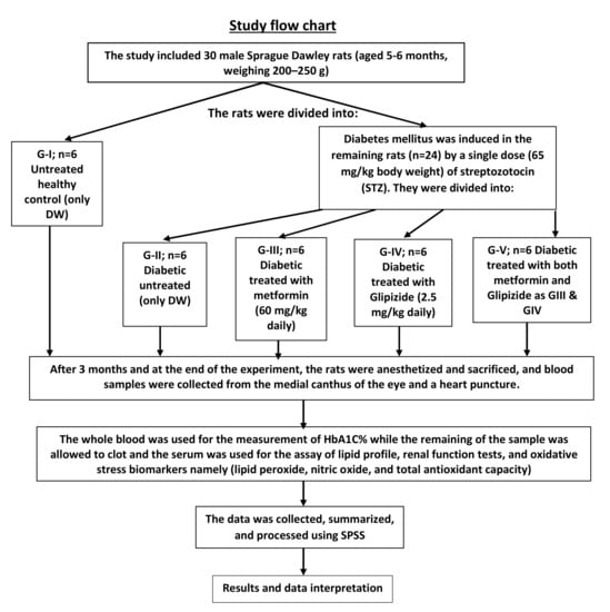 Abdel-Moneim, A.-M.H.; Lutfi, M.F.; Alsharidah, A.S.; Shaker, G.; Faisal, W.; Abdellatif, A.A.H.; Rugaie, O.A.; Mohany, K.M.; Eid, S.Y.; El-Readi, M.Z.; et al. Short-Term Treatment of Metformin and Glipizide on Oxidative Stress, Lipid Profile and Renal Function in a Rat Model with Diabetes Mellitus. Appl. Sci. 2022, 12, 2019. https://doi.org/10.3390/app12042019