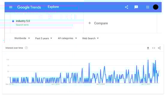 - Google Trends: Industry 5.0. Available online: https://trends.google.com/trends/explore?date=today%205-y&q=industry%205.0 (accessed on 28 November 2021).