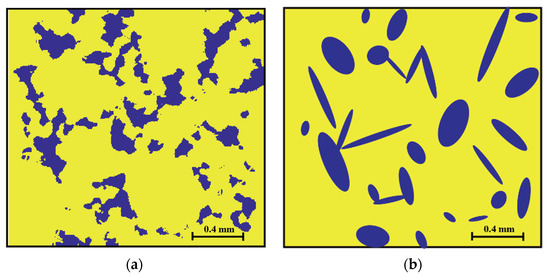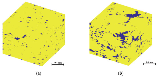 3D reconstruction of some tight sand samples: (a) NO.2 rock sample; (b) NO.10 rock sample. The yellow area in the map is rock skeleton, and the blue area is pore space.