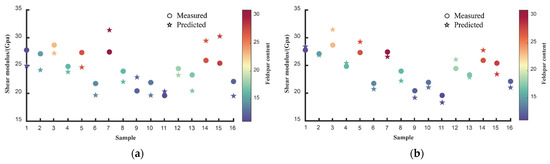 The shear modulus of dry rock samples estimated from the rock physics model. (a) The comparison between measured values (circle) and predicted values (star) drawn from the Xu–White model. (b) Comparison between measured values (circle) and predicted values (star) drawn from the improved rock physics model.