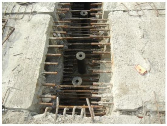 Dowel joints are used widely in buildings because they can play an important role in seismic energy dissipation of a structure and an unseating prevention system. Research studies up to now have mainly focused on their seismic energy dissipation capacity [13,14,15]. The studs used in the rehabilitation of the Isola Della Scala bridge transformed from a simply supported structure into an IAB can be considered as dowels, in which the push-out test of the stud was carried out [16]. However, the studs had no rubber sleeve and were used together with expansive concrete mortar incorporated with the existing bearings; accordingly, the connection between the superstructure and substructure is rigid. Studies on nonlinear stiffness of semi-fixed dowel joints in SIABs are lacking in the literature.