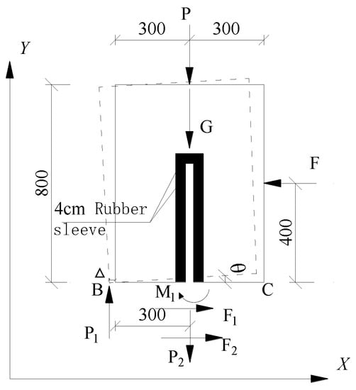 The force balance of the joint in the X and Y directions and the moment balance around the long edge of the concrete body can be expressed by Formulas (1)–(5).