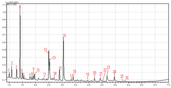 For the extraction and identification of free amino acids, 1.75 ± 0.1 g of amaranth flour was mixed with 15 mL of 15% trichloroacetic acid (TCA). The pH of the mixture was adjusted to 2.2 with 15% trichloroacetic acid (TCA) (isoelectric precipitation point of the proteins), and the extract was further diluted to 25 mL with 15% TCA [25]. Then, the supernatant was collected and filtered using 0.45-µm microfilters, and 100 µL of the filtered supernatant was subjected to the determination of organic components using the EZfaast GC-MS kit, following the protocol given by the manufacturer.