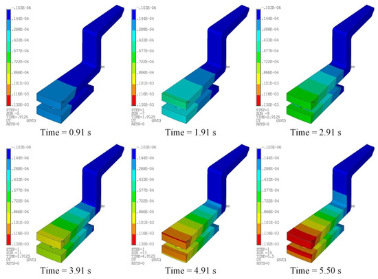 - Then, with the temperature distributions as multistep loadings, a structural analysis was executed to acquire the thermal deformation of the model;