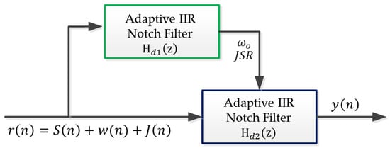 - Choi, J.W.; Cho, N.I. Suppression of narrow-band interference in DS-spread spectrum systems using adaptive IIR notch filter. Signal Process. 2002, 82, 2003–2013. [Google Scholar] [CrossRef]