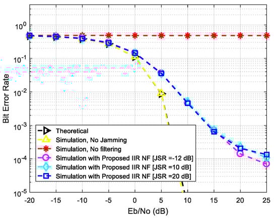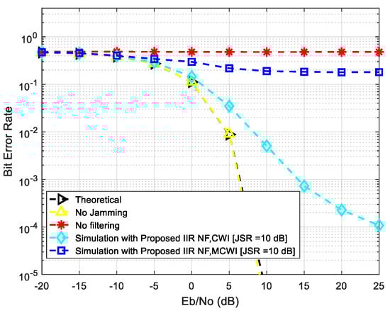 - El Gebali, A.; Landry, R., Jr. Mitigation of continuous wave narrow-band interference in QPSK demodulation using adaptive IIR notch filter. Am. J. Signal Process. 2020, 10, 10–18. [Google Scholar]
