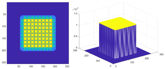 The synthetic aperture range corresponding to a single aperture after a two-dimensional scanning translation stage is presented in the left side of Figure 2, whereas the right side represents the derived equivalent synthetic aperture coherence transfer function expressed by Equation (7). As observed, the two results were highly similar.