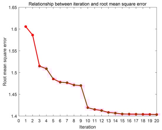 Relationship between the number of iterations and the RMSE of the image.