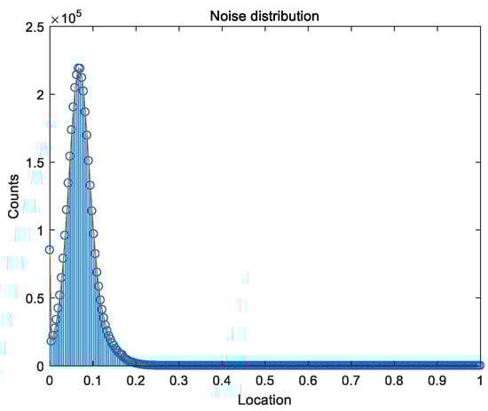 In this study, we performed a simple analysis of the noise distribution []. For the camera noise, we can use the elimination of outliers or the estimated noise distribution to redefine the random variable. In this scheme, we used the estimated noise distribution, as shown in Figure 10. The large scanning range of camera in this experiment caused the large noise and the low signal-to-noise ratio of the dark field images, which eventually led to an unsatisfactory HR image. To improve the reconstruction quality of the images and reduce the effect of the noise, we used each low-resolution image to subtract the estimated noise distribution as a new intensity image, which was used as the initial input for super-resolution reconstruction.