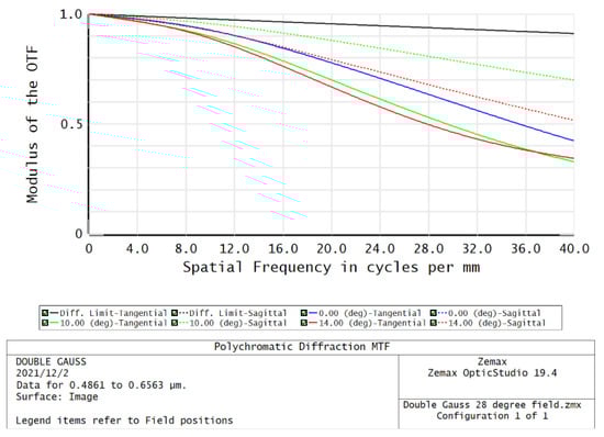 In addition, we find that the stripes in the diagonal direction can recover better, which may be caused by the imaging capability of the imaging lens. As shown in Figure 14, the modulation transfer function (MTF) of the imaging lens has different values in the S and T directions. Therefore, in a certain direction, the spatial frequency can pass well. Verification of this hypothesis will be carried out in follow-up work []. The Figure 14 is only a sketch map, and we can see that the imaging ability of the lens is different in different directions.