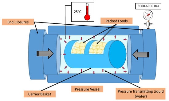 - Katsaros, G.; Alexandrakis, Z.; Taoukis, P. High-pressure processing of foods: Technology and applications. In Handbook of Food Processing: Food Preservation, 1st ed.; Varzakas, T., Tzia, C., Eds.; CRC Press, Taylor and Francis Group: Boca Raton, FL, USA, 2016; pp. 443–468. [Google Scholar]