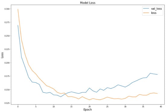 Figure 9 graphs the training loss of the model. The validation loss increases after 12 epochs, which means overfitting, so we adopted the model just before overfitting as the best model.