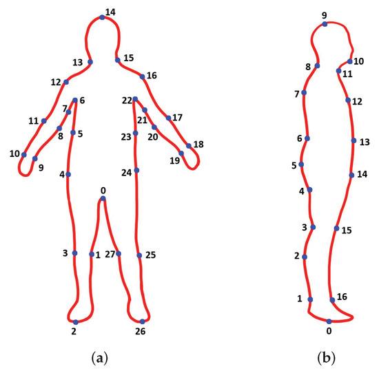 Human body contour keypoints for front-view images (a) and side-view images (b).