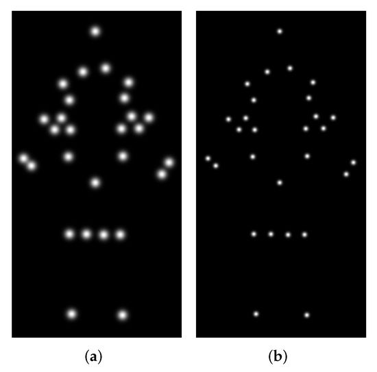 Heatmaps with different values of . The value of in (a) equals 3 and, in (b), equals 2. These two heatmaps allow our network to estimate the contour keypoints from coarse to fine.
