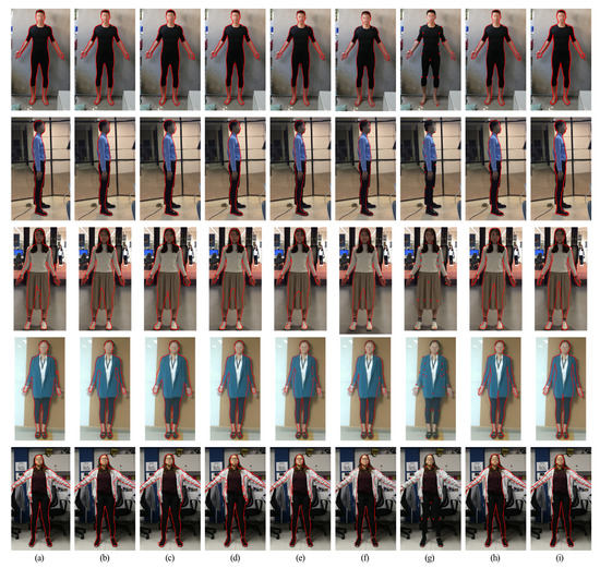 Since the images of human subjects in the dataset were captured in a standard standing pose, the body profile extraction results were not satisfactory if the tested pose deviated greatly from the standard pose. In the future, we aim to improve the robustness of the proposed method by expanding our dataset with more, different human poses. Moreover, more potential applications based on our profiling, such as personalized outfit recommendation, could be developed [45,46].