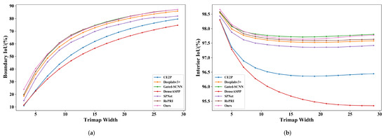 Error analysis on test set. Boundary IoU (a) and Interior IoU (b) have different trimap widths.